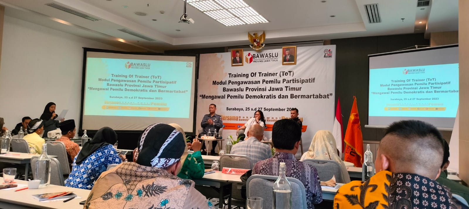 Bawaslu Pacitan dengan difasilitasi Bawaslu Provinsi Jawa Timur melakukan Training of Trainer (ToT) Modul Pengawasan Pemilu Partisipatif selama 3 hari di Harris Hotel Kota Surabaya, Selasa (26/9/2023).