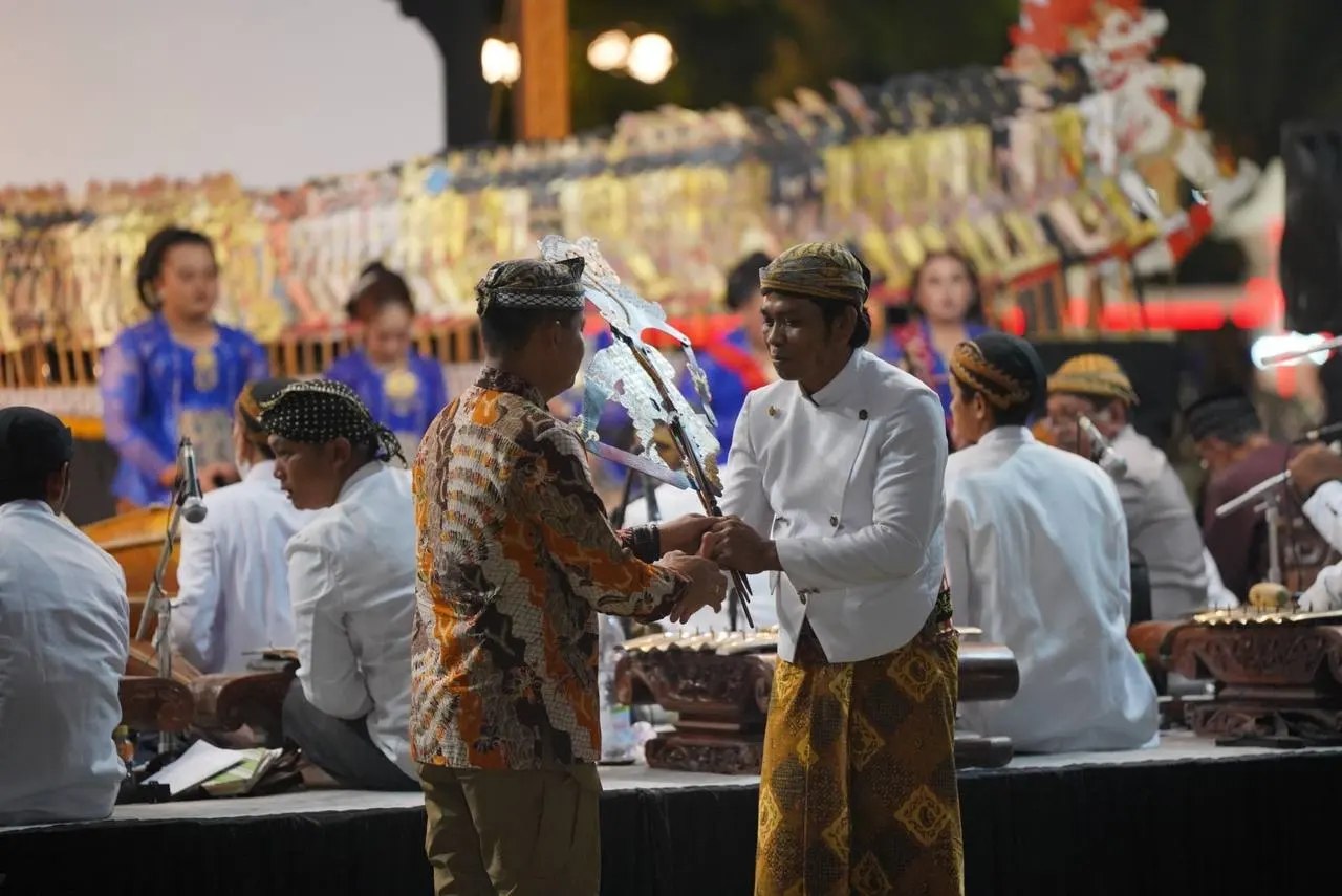 Kodim 0801/Pacitan menggelar pentas wayang kulit dalam rangkaian Hari Ulang Tahun (HUT) ke-78 Tentara Nasional Indonesia (TNI).