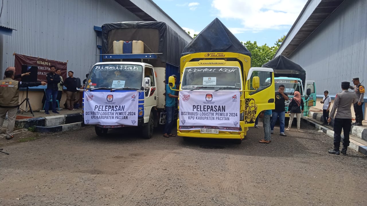 Komisi Pemilihan Umum (KPU) Kabupaten Pacitan melakukan pengiriman logistic Pemilu ke 1.860 Tempat Pemungutan Suara (TPS) di 12 kecamatan di Pacitan.